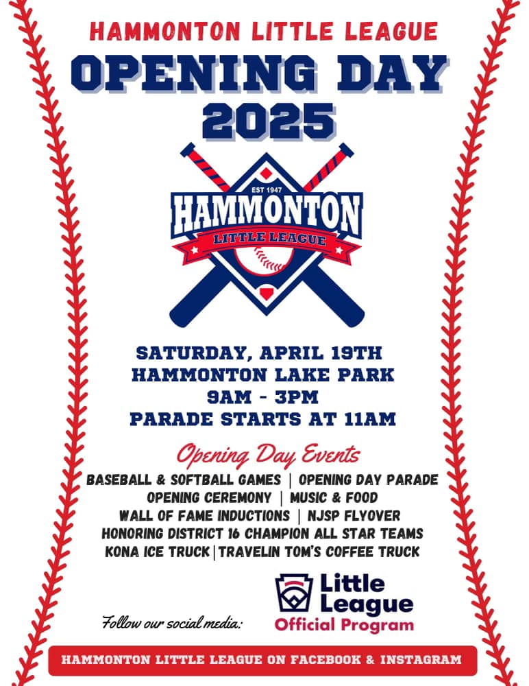 Saturday, April 19th, Hammonton Lake Park, 9am-3pm