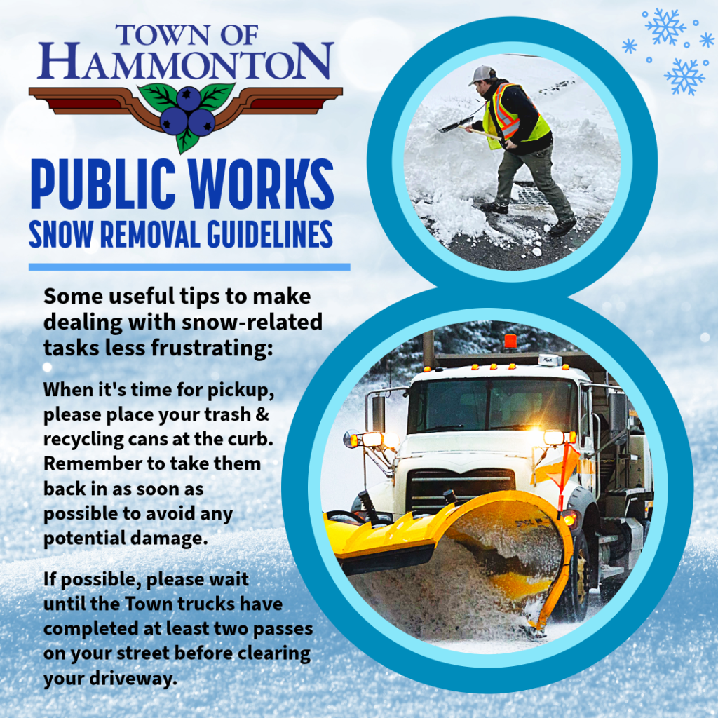 In response to varying snowfall amounts and durations, town trucks may need to clear your street multiple times. As snow is pushed off the plows, it can accumulate in driveways, which is an unavoidable consequence of the plowing process. Homeowners are responsible for removing this snow from their driveways.