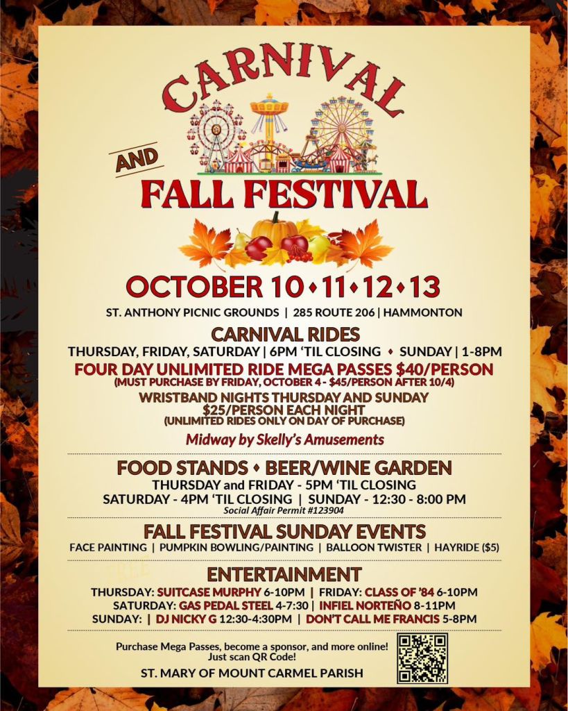• FOUR DAY UNLIMITED RIDE MEGA PASSES $40/PERSON (MUST PURCHASE BY FRIDAY, OCTOBER 4 – $45/PERSON AFTER 10/4)