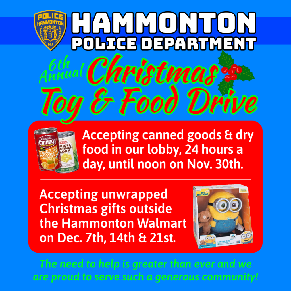 Please consider donating to the Hammonton Police Department Toy and Food Drive.