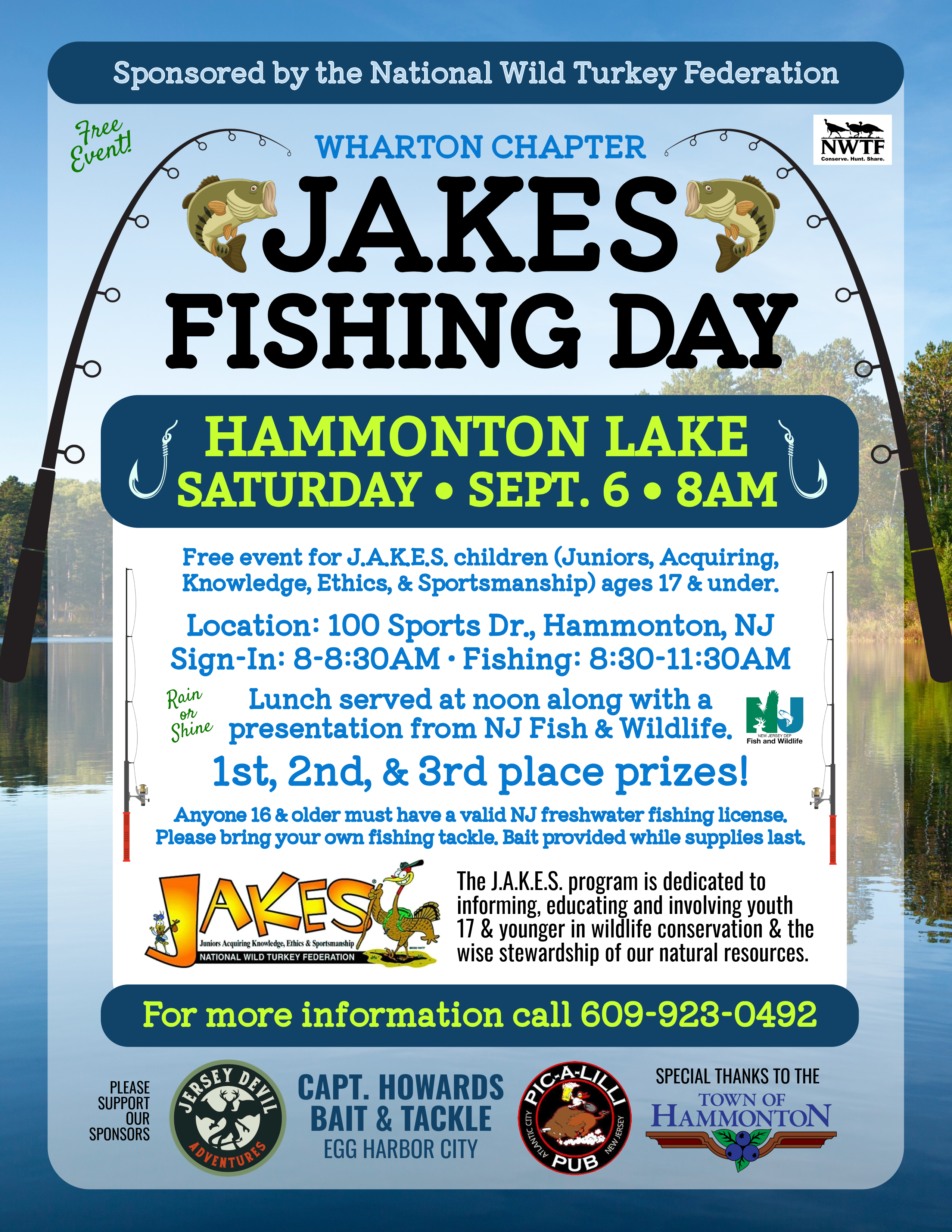 Mark your calendar for the National Wild Turkey Federation (NWTF) Jakes Fishing Day event at Hammonton Lake Park on Saturday, Sept. 6! Lunch served at noon along with a presentation from New Jersey Fish & Wildlife.