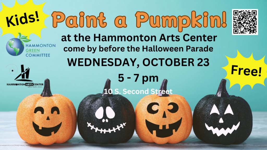 Stop by the Hammonton Arts Center before the Halloween Parade – the Green Committee is partnering with HAC for a fun, free, kid-friendly pumpkin party!