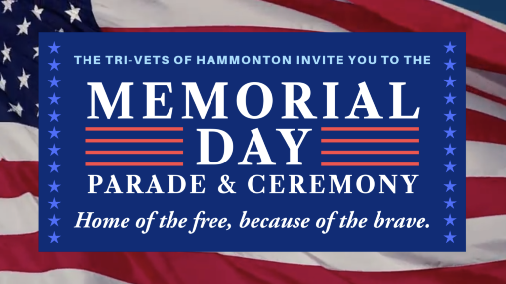 The annual 2025 Tri-Vets Memorial Day Parade will be held on Monday, May 26th at 10:30 a.m., in Hammonton with a ceremony to follow at Veterans Memorial Park on Bellevue Ave.