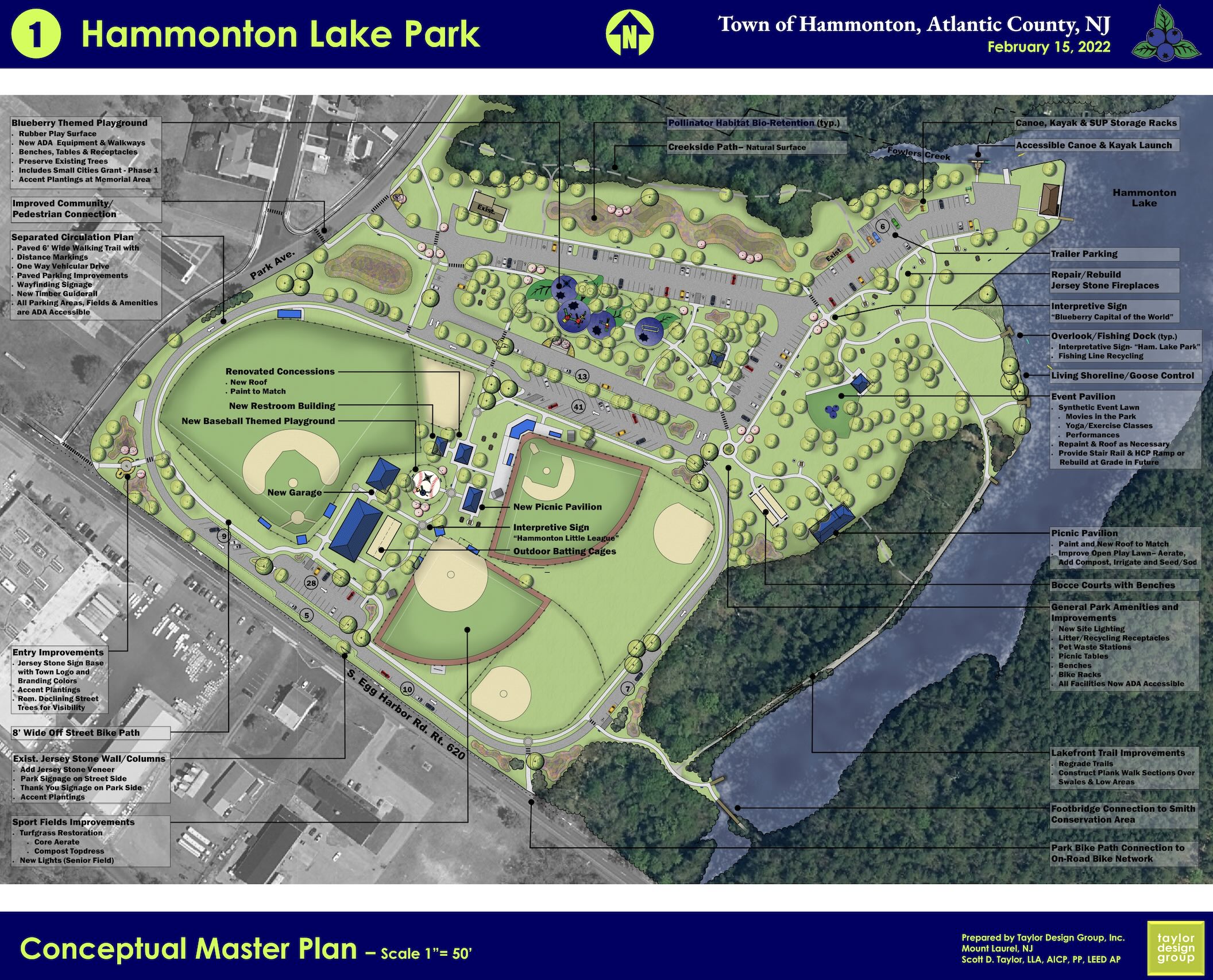 A virtual meeting to discuss concept plans for improvements to Hammonton Lake Park will take place on Wednesday, January 7 at 5:30 p.m. Members of the public are invited to provide feedback. The meeting is virtual only.