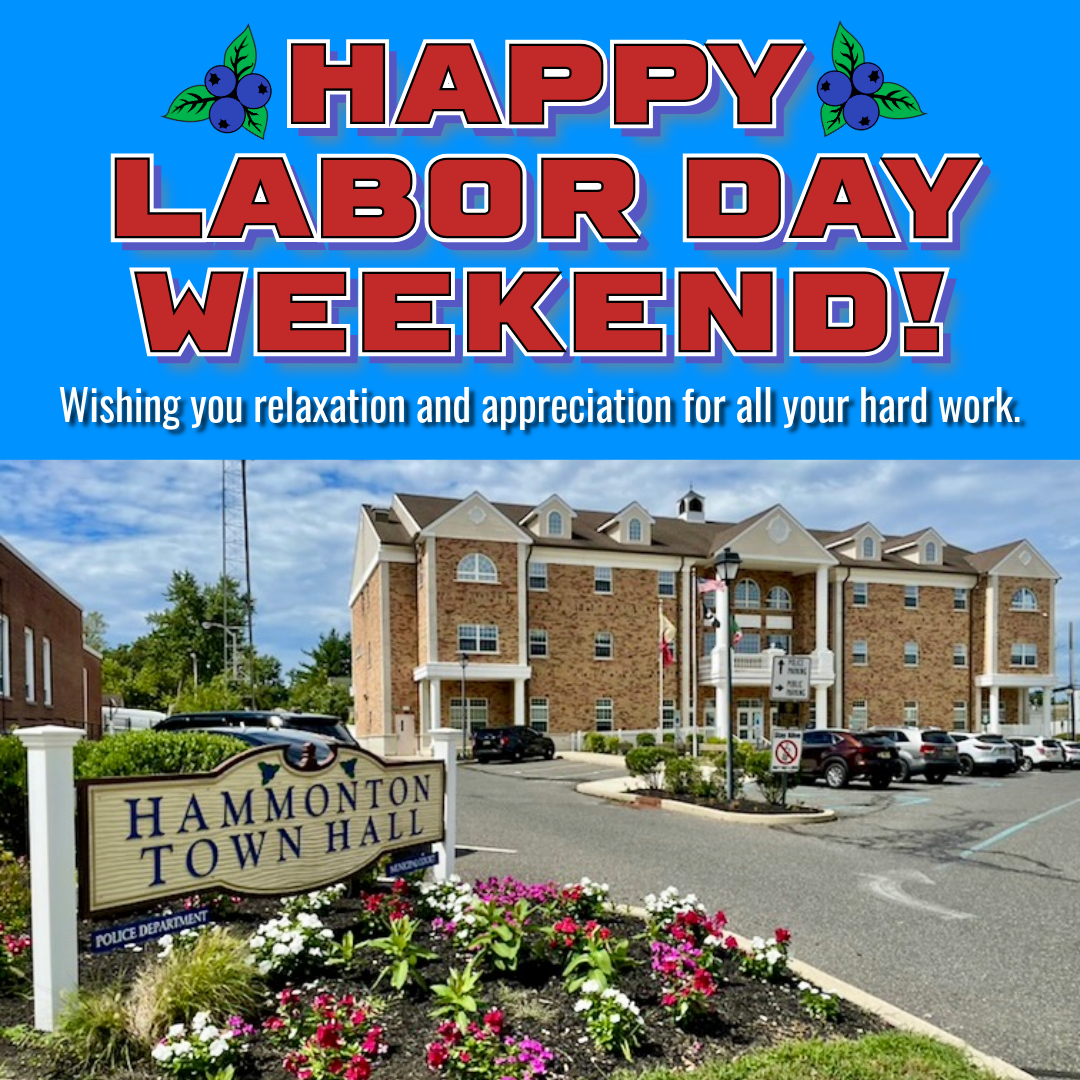Holiday Update: Hammonton Town Hall will be closed on Monday, September 1st, 2025 in observance of Labor Day.